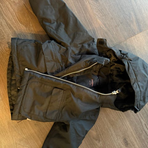 Brugt én sæson, men mest til/fra institution i bilen. Hætten er ubrugt.