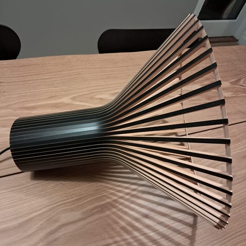 Elegant og unik bordlampe lanceret af finske Secto Design. Lampen har en masse sjæl og et utroligt unikt design, samt et praktisk, bredt lys. Derfor passer lampen utroligt godt ind på natbordet, i stuen eller entréen, hvor den vil tilføje en smuk og klassisk detalje til indretningen. Lampen er i sort og lampeskærm er lavet af PEFC-certificeret, finsk birketræsfinér.