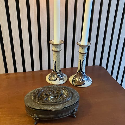 Antik bronzeskæske – smykkeskrin med riddermotiv – vintage charme