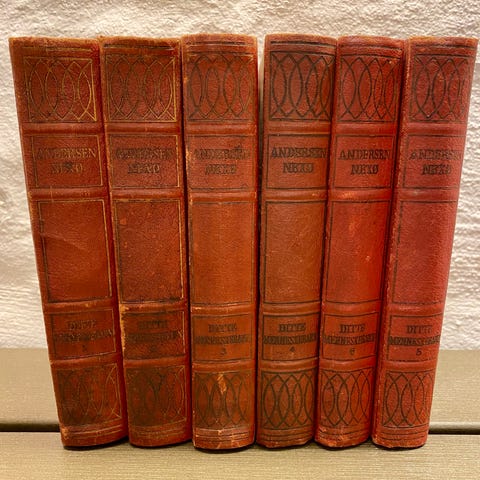 Billedet viser en samling af seks bøger af den danske forfatter Martin Andersen Nexø.