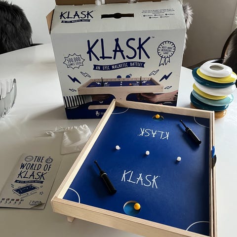 Spillet består af en firkantet træplade med huller og kugler i forskellige farver. Designet til at udfordre strategiske evner og finmotorik.