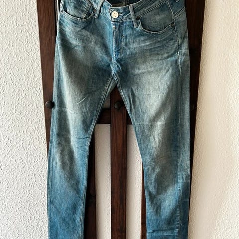 G-star jeans i blå farve til kvinder. Størrelse M med taljemål W28. Længde 34zFremstillet i denim materiale. Designet til daglig brug og afslappet påklædning.