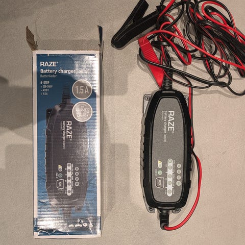 RAZE R6 batterilader med en kapasitet på 6 ampere og kompatibel med 6-12 volt batterier. Egnet for bruk med bil, motorsykkel, båt og gressklipper. Batteriladeren har indikatorer for lading og spenning, samt brytere for 4 volt og 12 volt utgang. Enheten er designet for enkel og sikker lading av blybatterier.