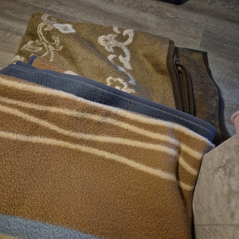 Disse tre tæpper er blevet brugt men er stadig i god stand.