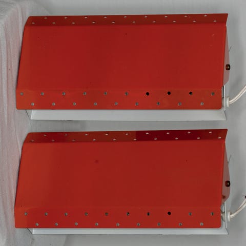 Retro væglamper med spor af brug, de har været monteret med plisseret skærme der kan medfølge u/b