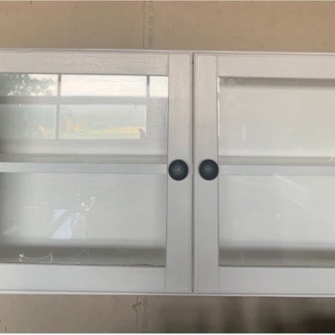 Flot hvidt skab med låger i højglans til vægophæng.