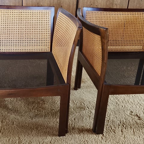 2 stk. stole med fransk flet og hynder, rimelig stand, men kræver mindre reparationer. Enkelte ben er gået fra hinanden og det ene sædeunderlag skal skiftes (nyt sædeunderlag medfølger). Prisen er for begge. Kom gerne med et bud.