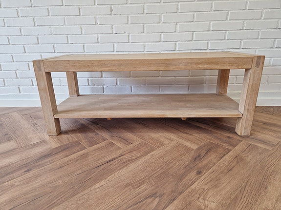 Monteret med lyst fletsæde, som er særdeles nemt at vedligeholde.