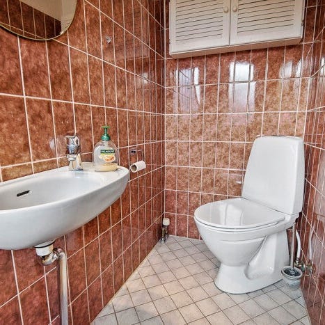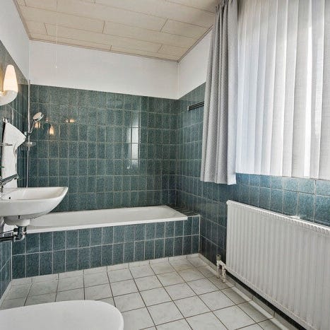 Smuk flaskegrøn flise med indbygget toiletpapirsholder, original fra 1969.