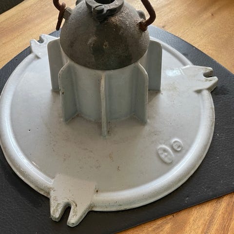 Stor industriel loftlampe med matteret glas hvilket giver en behagelig belysning. Højde 36 cm, Ø 42 cm