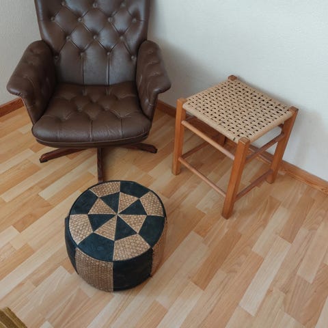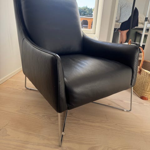 Super dejlig læder lænestol m. justerbar ryg samt skammel