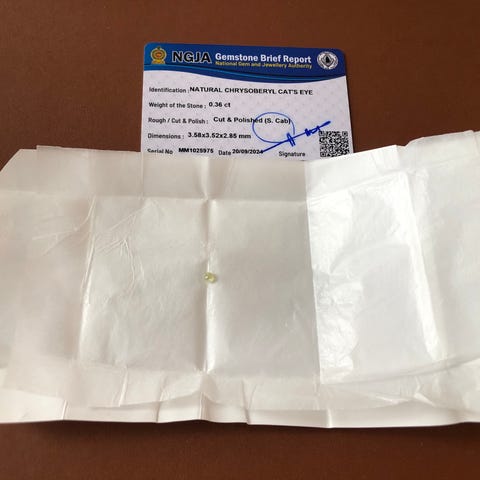 Testet og gennemgået af NGJA (National Gem and Jewellery Authority) på Sri Lanka.