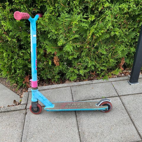 Brugt løbehjul sælges. Virker upåklageligt og der er stadig mange timers leg i det. Lyserødt med prinsesse motiv.