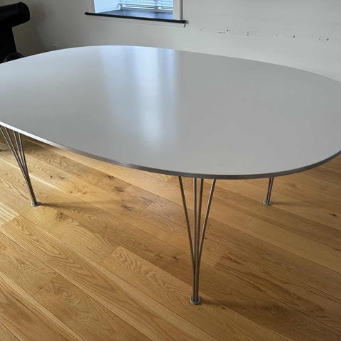 Flot og velholdt Piet Hein spisebord til salg. Bordet har en enkelt lille skade (se billede) men står derudover pænt trods sin alder. Bordet er i sin tid købt hos Fritz Hansen og måler 180 x 120 cm.