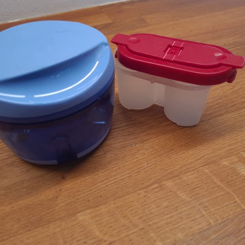 Den brede åbning gør det nemt at hælde mad ud med en ske eller en ske under madlavning. Låget har en tap, der nemt kan løftes op. Når det er åbent, sikrer hængslet, at låget låser. Dette er meget praktisk, når man laver mad eller syr. Låget laver en let kliklyd, når det åbnes/lukkes. Det er gennemsigtigt, så det nemt kan identificere indholdet.