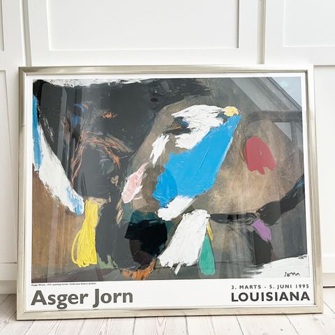 Louisianas ikoniske Arne Jacobsen plakat professionelt indrammet i ramme af røget eg med museumsglas. Måler inkl. ramme 88 x 65 x 3 cm