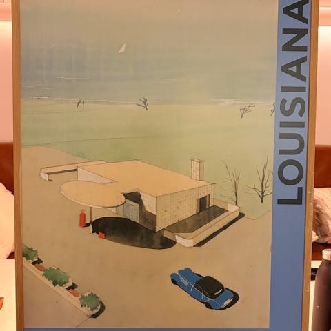 Louisiana Arne Jacobsen plakat professionelt indrammet i ramme af røget eg med museumsglas