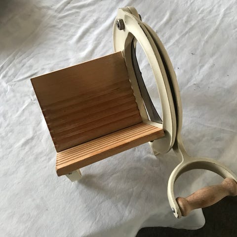 Stort og flot skærebræt af massiv teaktræ. Tilhørende tranchere/forskærersæt bestående af kniv og stegegaffel af blankpoleret stål.