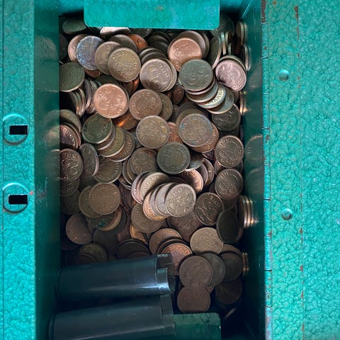 Danske 25 øre 619 gram ca 221 stk Margrethe II 1990-2001 .2,8 gram Tin bronze