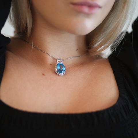 Vedhæng med Topas og diamanter 18 karat hvidguld