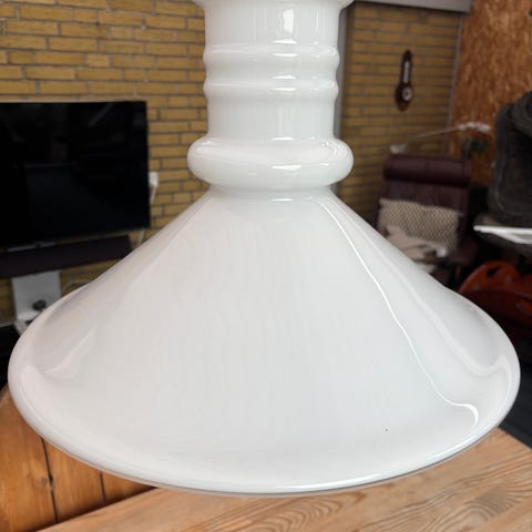 Flot loftlampe, med hvid Holmegård skærm ?