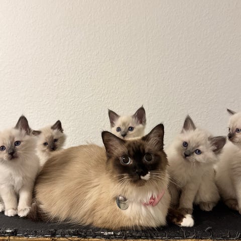 Forældre og killinger er sunde og raske. De har en stor personlighed 💗 og de er meget nemme at holde rene med nærmest ingen pelspleje (vi børster 1 gang om ugen). De elsker at få vasket ansig/hoved hver morgen.
