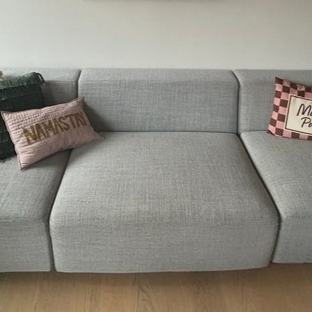 Brugt sofa i god stand - kan trænge til en rengøring før brug. Da vi selv overtog den brugt, kender vi desværre ikke mærket.