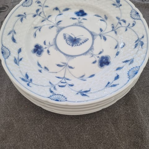 4 middagstallerknet i 1. Sortering +3 stk 2. Sortering b og g sommerfugl dia 24 cm