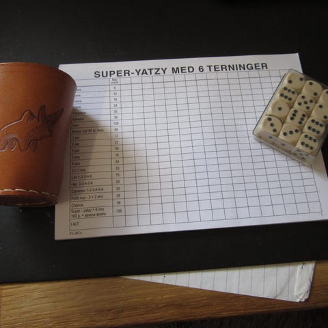 Fint raflesæt til Yatzy fra Georg Jensen. Rustfrit stål. Kan afhentes i Farum eller i KBH S