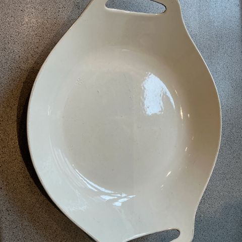 Diameter mål uden hank Ø35 cm. Længde 42 cm Højde 6 cm. Fremstår i rigtig flot stand.