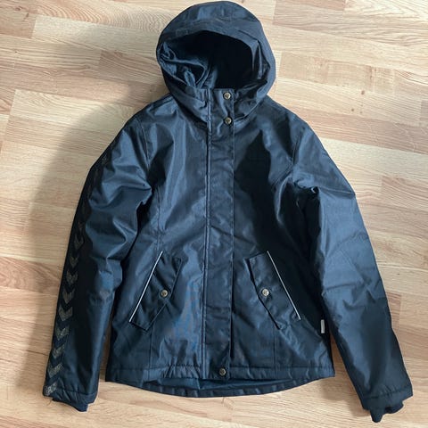 Hummel vinterjakke med guldvimpler langs ærmerne. Kun brugt få gange. Kan sendes eller evt hentes I Køge/Roskilde/Næstved/Hårlev