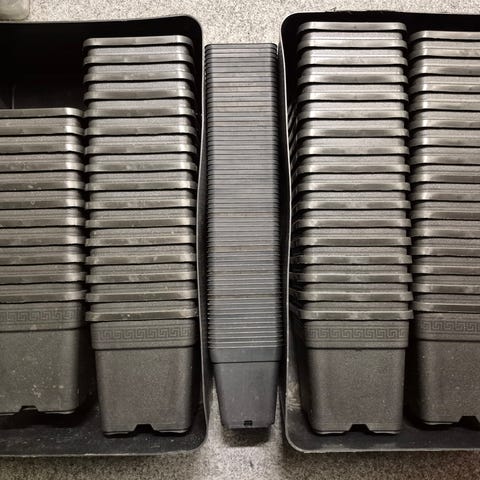 16 Potter, 16 låg, 8 Vandtanke på 15L hver, 16 nye væger, 4 endepropper, 2 nye filter og 2 tilkoblingsslanger.