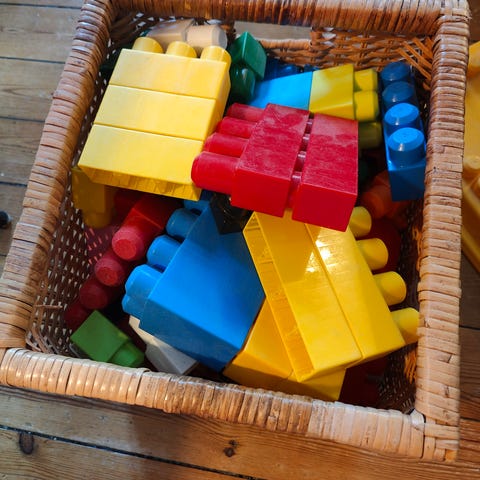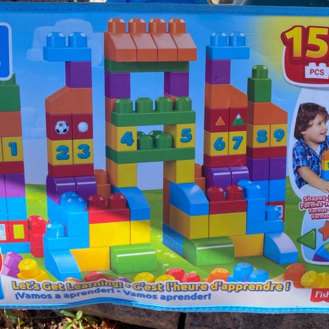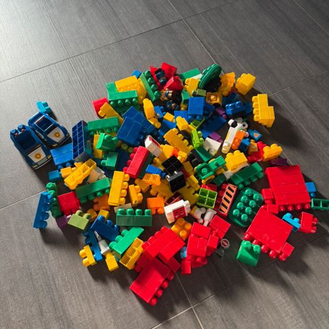Mega bloks med vogn og mange klodser, i rigtig god stand. Fra røgfrit og dyrefrit hjem.