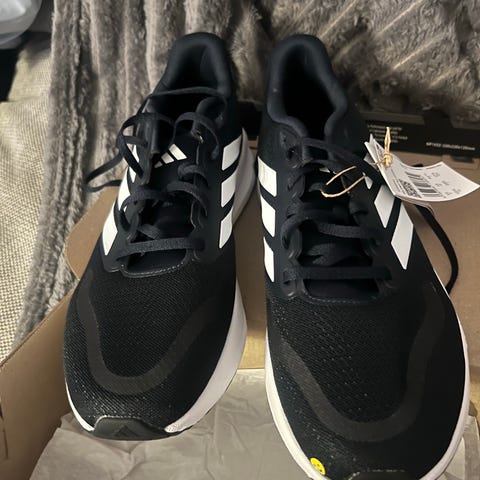 Adidas Response Run løb sko i sort farve, størrelse 45. Skoene er designet til løb og har en robust ydersål for godt greb. Materialet er en kombination af tekstil og syntetiske elementer, som giver støtte og komfort under træning.
