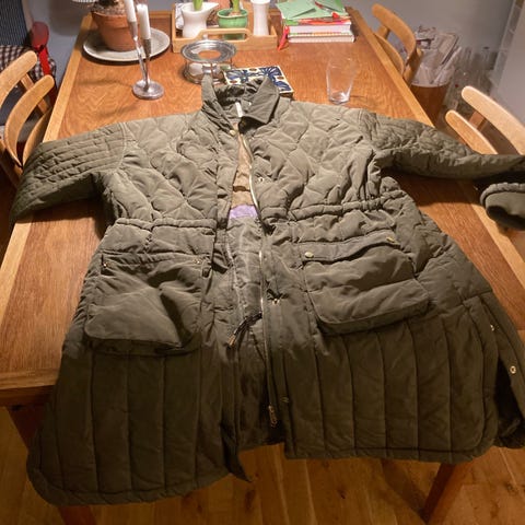 Frakken har en lynlås under hvert ærme der lige så lang som frakken, der gør det let at cykle.