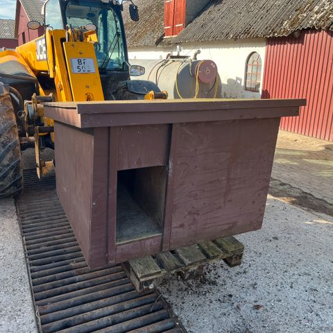Isoleret hundehus med terrasse hvor hunden kan sidde i læ og tørvejr men stadig holde udkig.