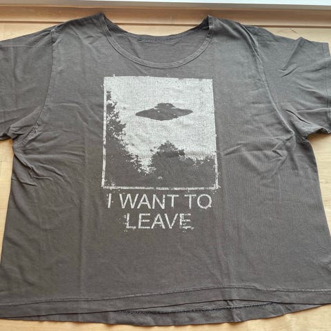 Statement T-Shirt “I want to leave” str. XL. Sælges for 50 kr.