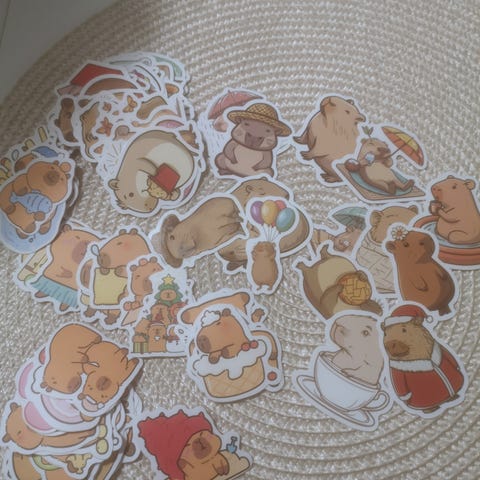 Capybara & Baby. Holografiske klistermærker. Finurlig dyreillustration