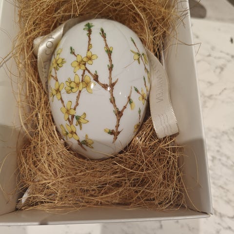 Royal Copenhagen påskeæg - Forsythia og munk fugl