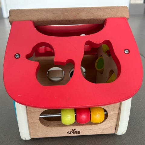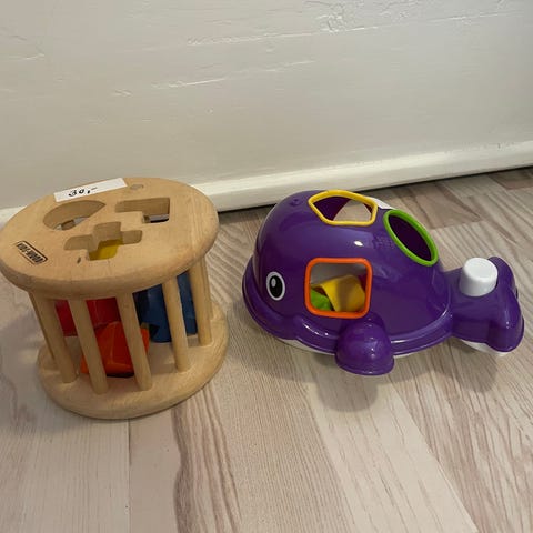 Aktivitetspsil som kan bruges med og uden batterier (lyd), ca. 30 cm, fin stand: 20 kr. Træhus med plastiktag og klodser til at putte i de rigtige huller, ca. 25 cm, fin stand: 40 kr. Duplo larve, ca. 30 cm lang, fin stand: 50 kr. (flere ting kommer løbende på annoncen). Sender gerne!