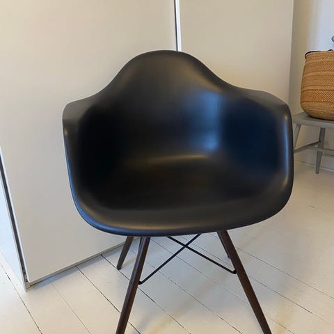 Nypris 4.600kr Flot Charles eames skal stol. Mærket Vistra. Med træben. Har også en i cremet hvid til 1100kr