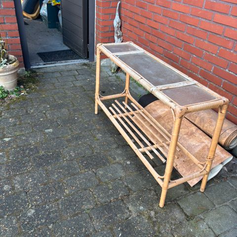 Flot bambus bord i hvidt med glasplade og med en hylde under glaspladen. Kan bruges til mange formål i hjemmet. Fejler intet.