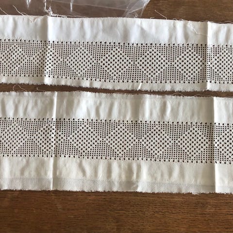 - 2 stk ens - 2rækker hulmønster fra puder 6 x 56 cm en mindre skade på det ene stykke - se sidste foto