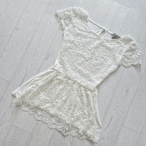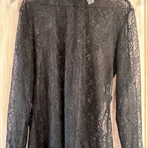 Mørkebrun Blondebluse m. 3/4 ærmer. Str 40/38. Knappes foran med små hægter. Pæn stand, Mærke jh collectibles. BV - 49x2 cm. L - 56 cm. Vægt 115 gr. Se evt også mine andre annoncer.