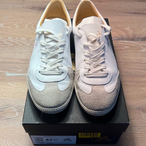Super flotte Le Coq Sportif sneakers i brun/kamel farve med gyldne detaljer.