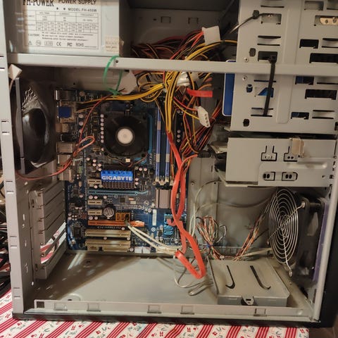 Ældre men funktionsdygtig pc, 2 diske: 128 GB SSD og 1 TB HDD. Aktiveret windows, fuldt opdateret. Det er blot at sætte strøm, skærm og tastatur/mus til, og du er kørende