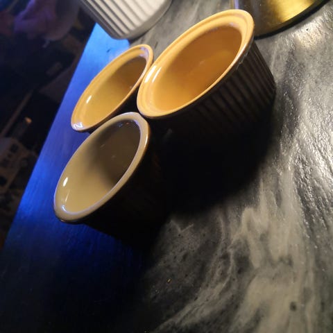3 stk super fine skåle/fade til servering. Lavet af ler. Kunne godt være franske eller svenske. Prisen er for alle 3.