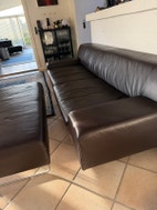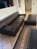Ægte læder sofa med puf
