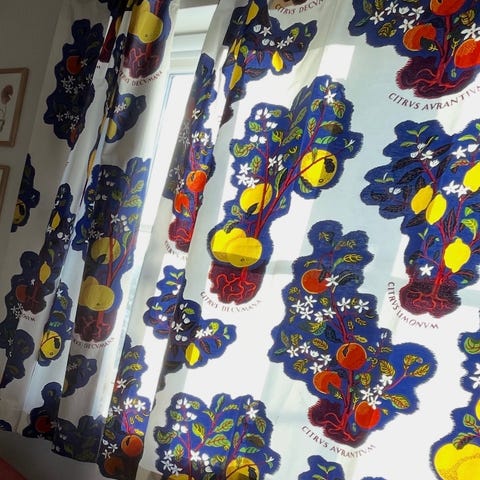 Gardiner i stoffet "Vegetable Tree" af Josef Frank for Svenskt Tenn.