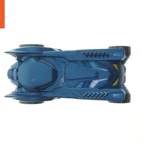 Dette er en legetøjsbil, der forestiller Batmobilen fra Batman-universet. Den er sort med grå detaljer og har synlige designtræk fra Batmobilen. Den er 33x17 cm i størrelse og kan bruges som et samlerobjekt eller til leg. Kan skyde en pil afsted